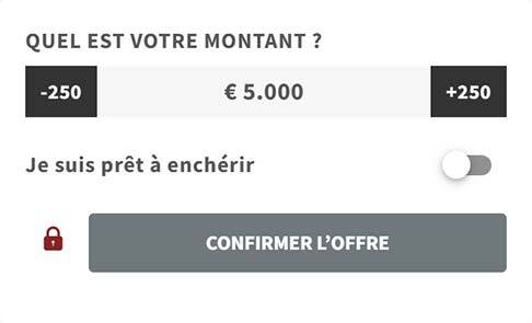 Vous avez également la possibilité de soumettre une enchère plus élevée couvrant plusieurs paliers en cliquant sur « offre directe ». Le montant sélectionné sera alors immédiatement visible pour ce lot.